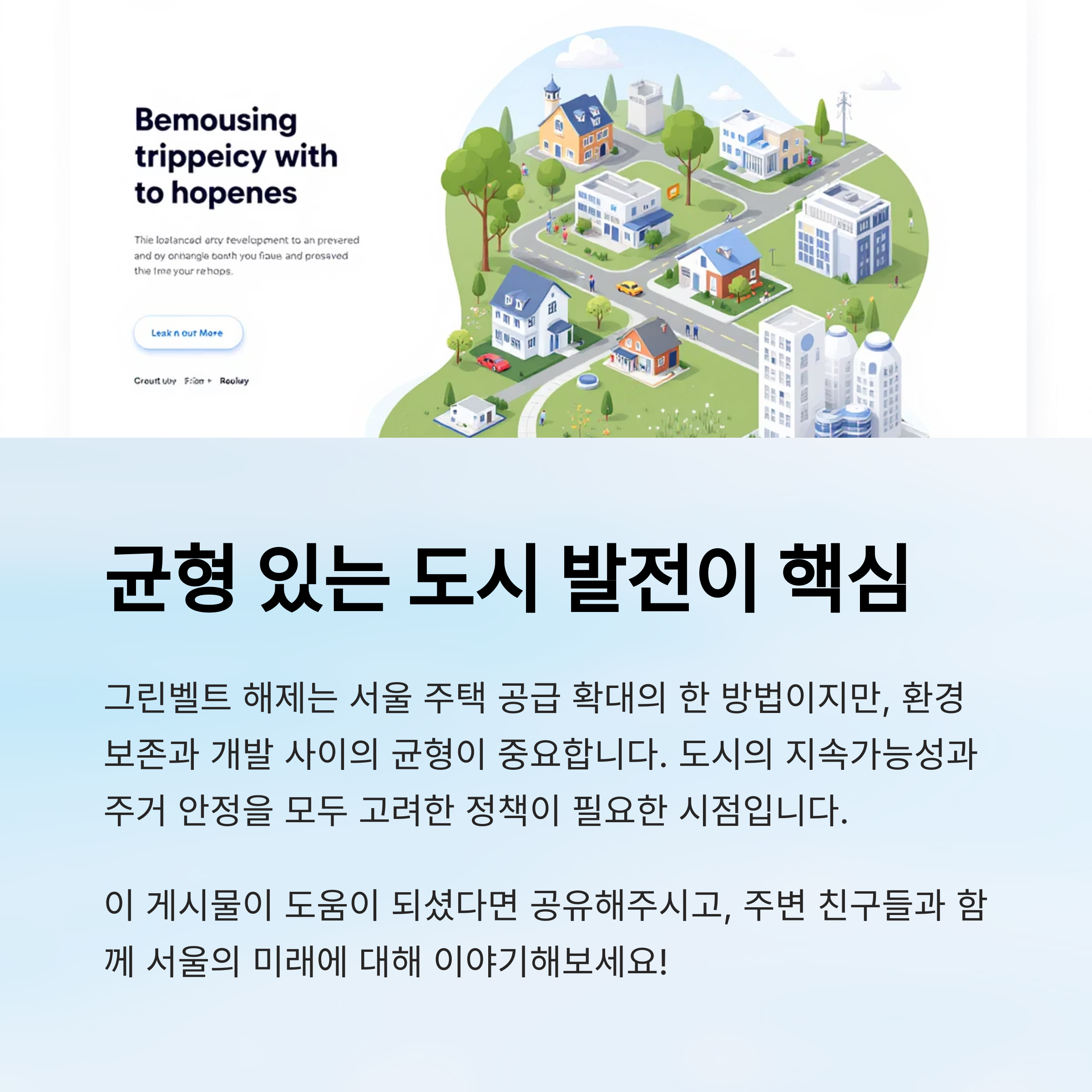 서울 부동산 시장은 앞으로도 다양한 변화를 겪을 거예요. 그린벨트 해제는 그 흐름 속에서 하나의 중요한 열쇠이지만, 이보다 더 중요한 건 전반적인 도시 전략의 ‘균형’이에요. 다양한 계층이 안정적으로 거주할 수 있는 도시를 만들기 위한 포용적 정책이 절실해요.