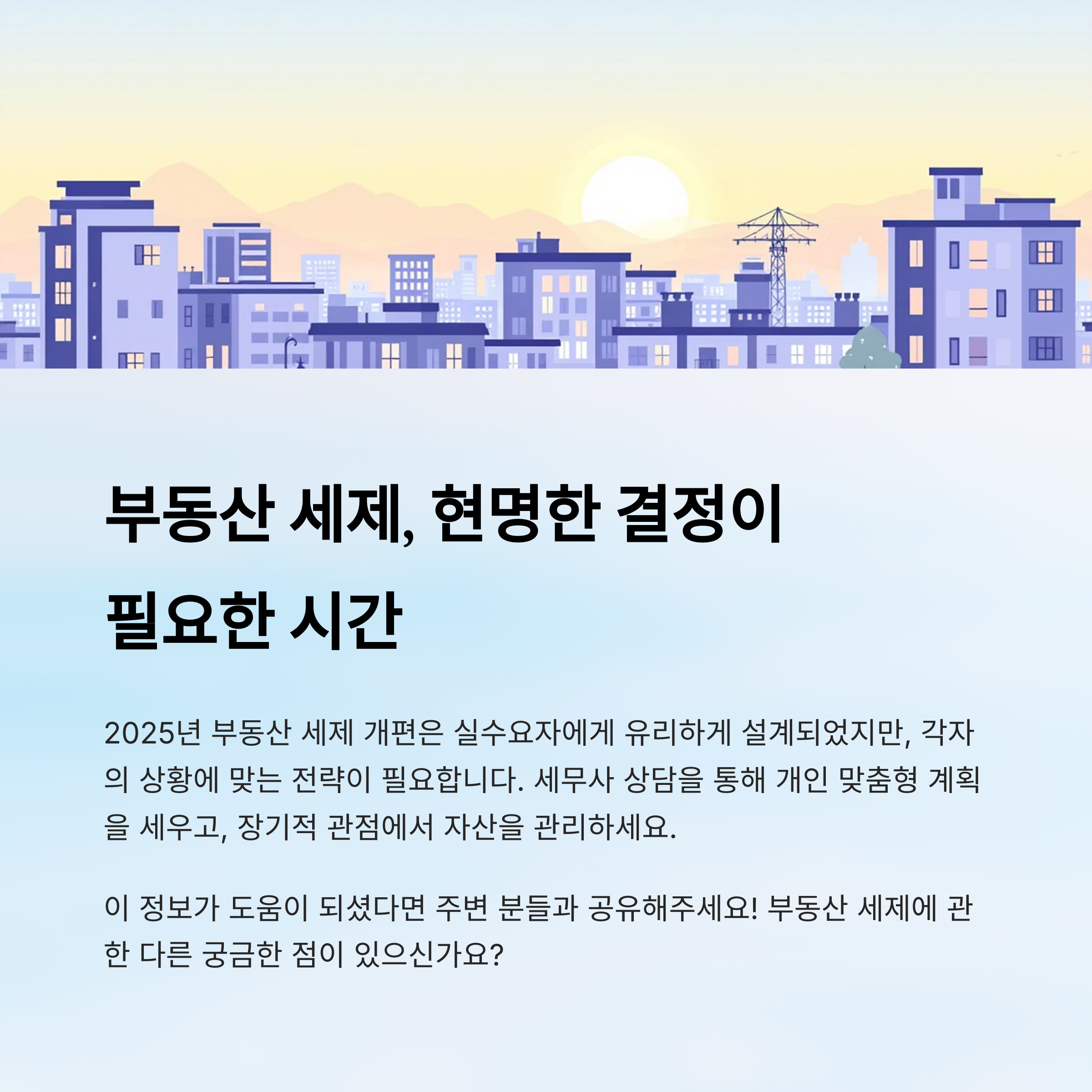 세제 개편은 모든 사람에게 동일한 영향을 주지 않아요. 자신의 상황과 자산에 맞는 전략을 세우는 게 가장 중요한 시대가 되었답니다.