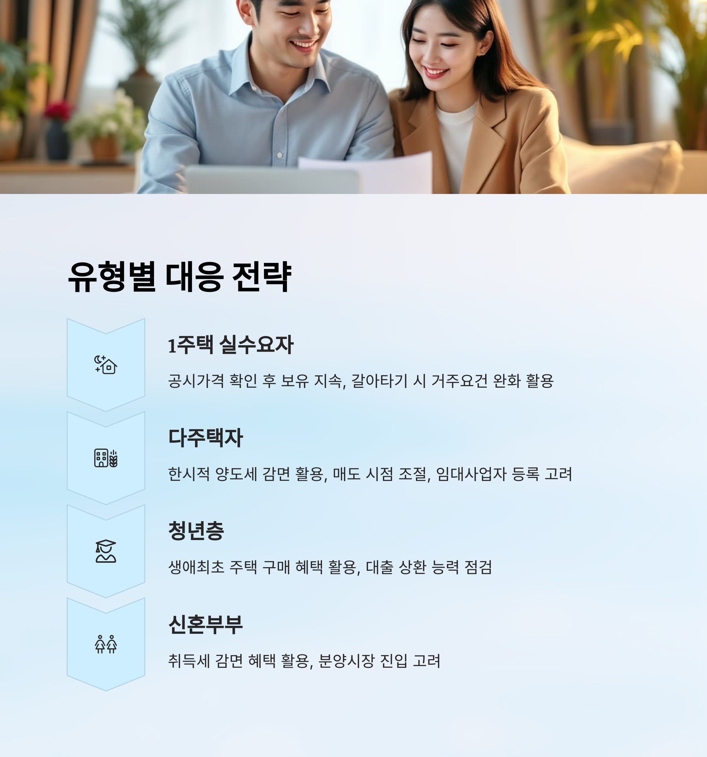 | 다주택자 | 한시적 매도, 분산 투자 | 양도 시점 조절 |
