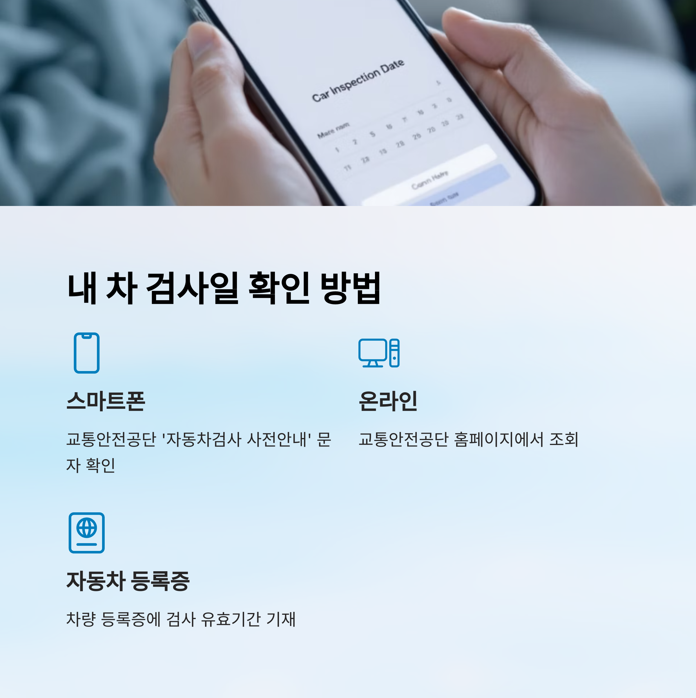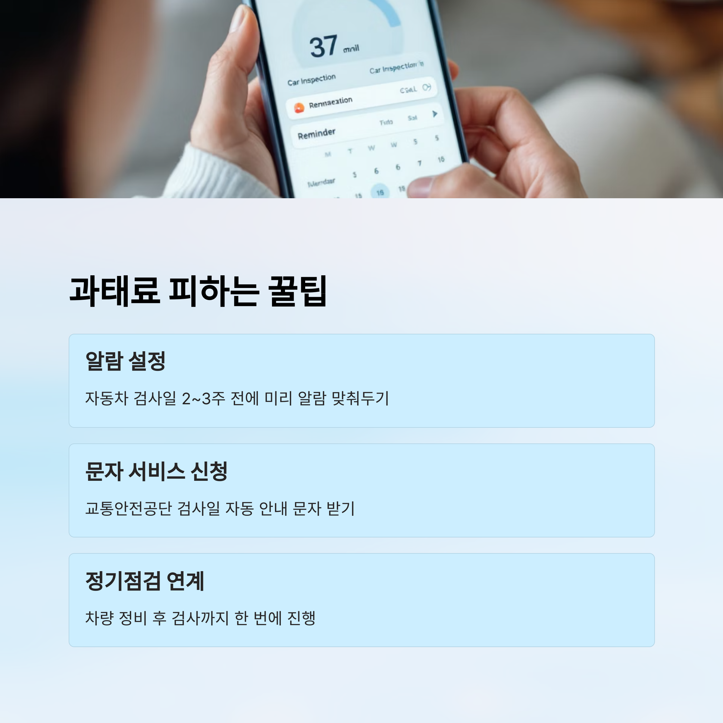 - 📅 스마트폰 알람 설정: 자동차 검사일 2~3주 전에 미리 알람 맞춰두기