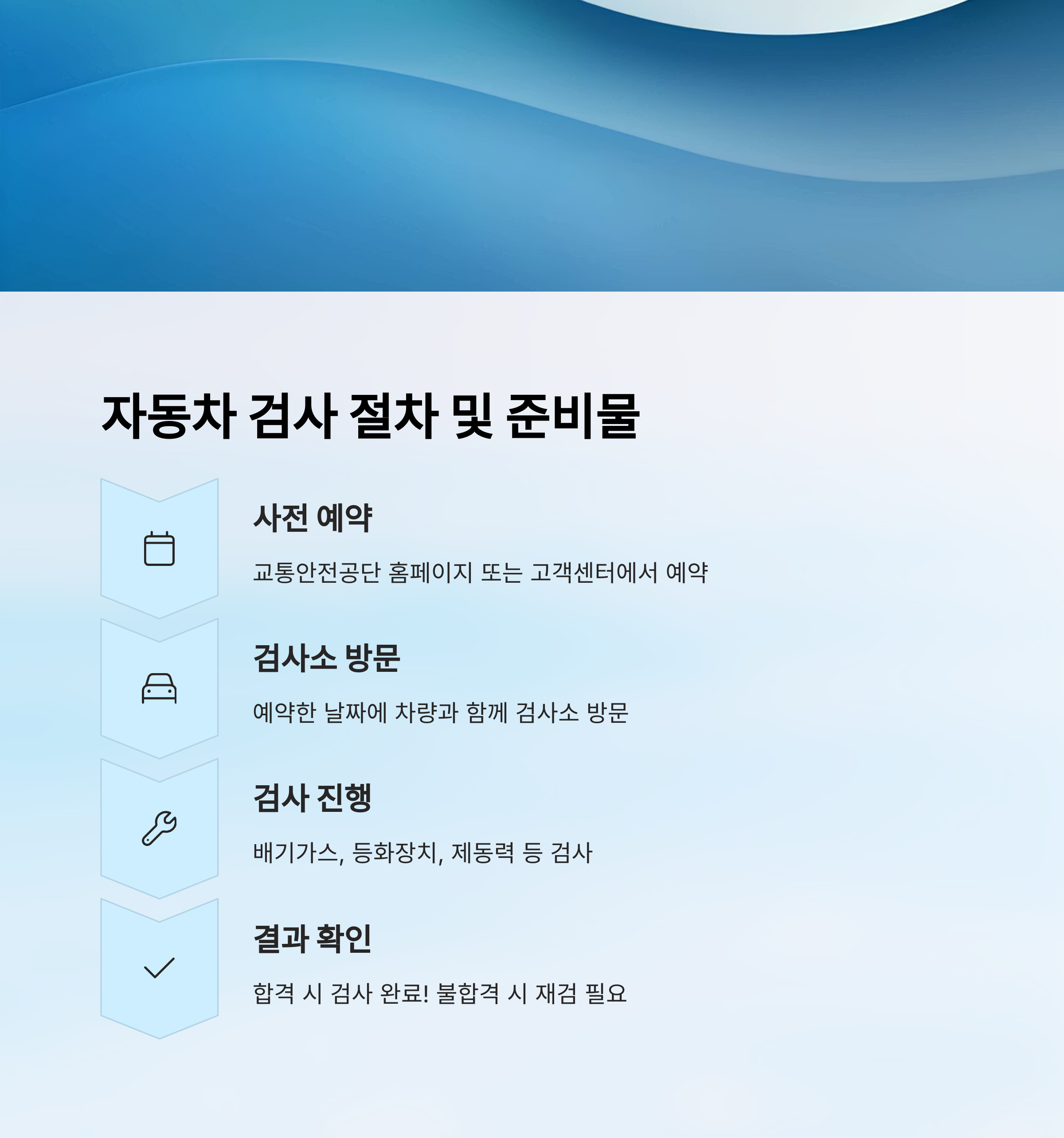 자동차 검사는 기본적으로 예약 → 방문 → 검사 → 결과 확인 순서로 진행돼요. 간단하게 정리해볼게요.