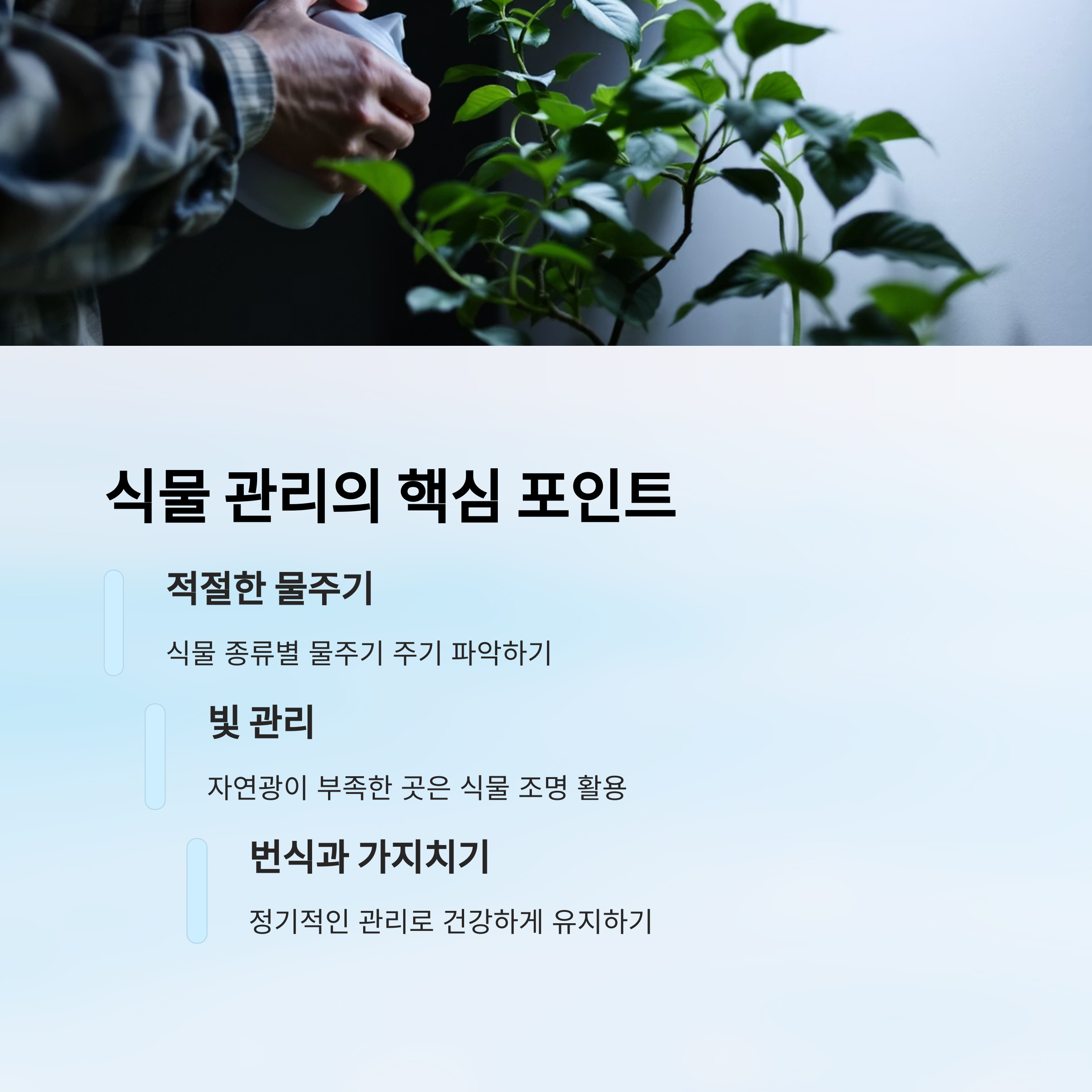 플랜테리어는 시작보다 유지가 더 중요해요. 처음엔 예쁘게 배치했어도 시간이 지나면 시들거나 벌레가 생기기도 하죠. 그래서 식물의 관리 습관을 들이는 게 꼭 필요하답니다. 🧴