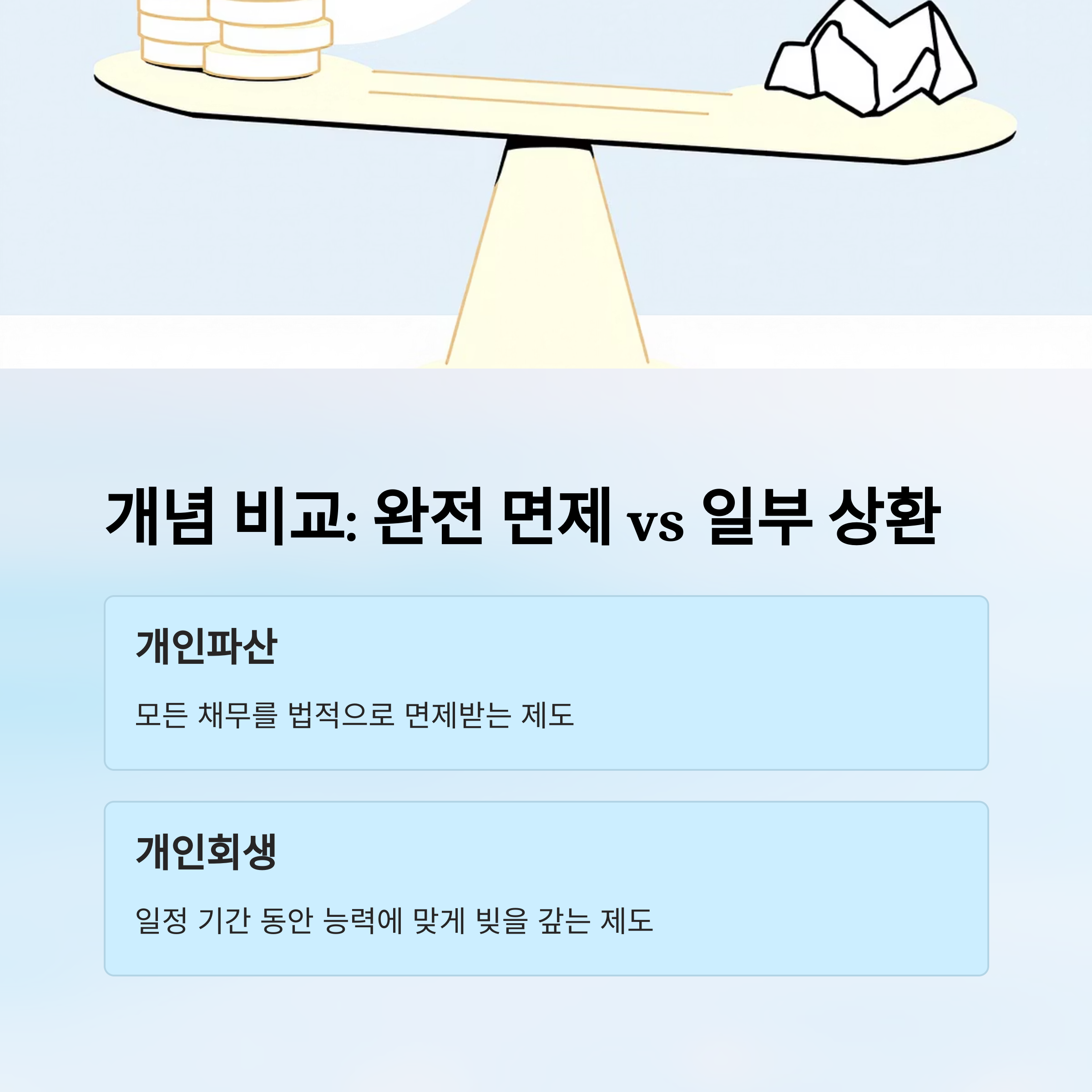 | 구분 | 개인파산 | 개인회생 |