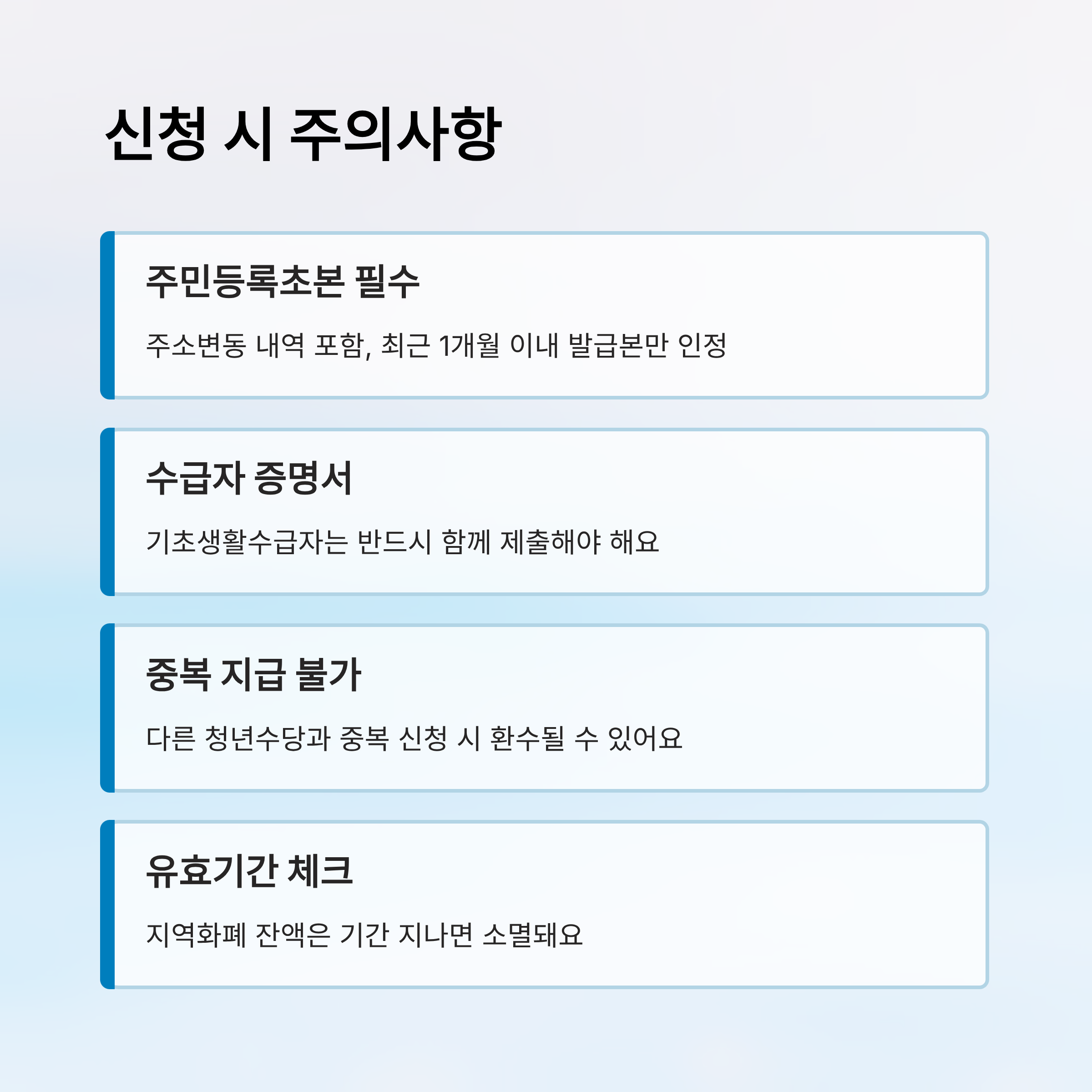 주민등록상 주소지가 어디냐에 따라 받을 수 있는지가 갈리니까, 주소지를 다른 시·군으로 이전하려는 경우 신청 전에 꼭 알아보고 결정하는 게 좋아요. 이건 꽤 중요한 변수거든요.