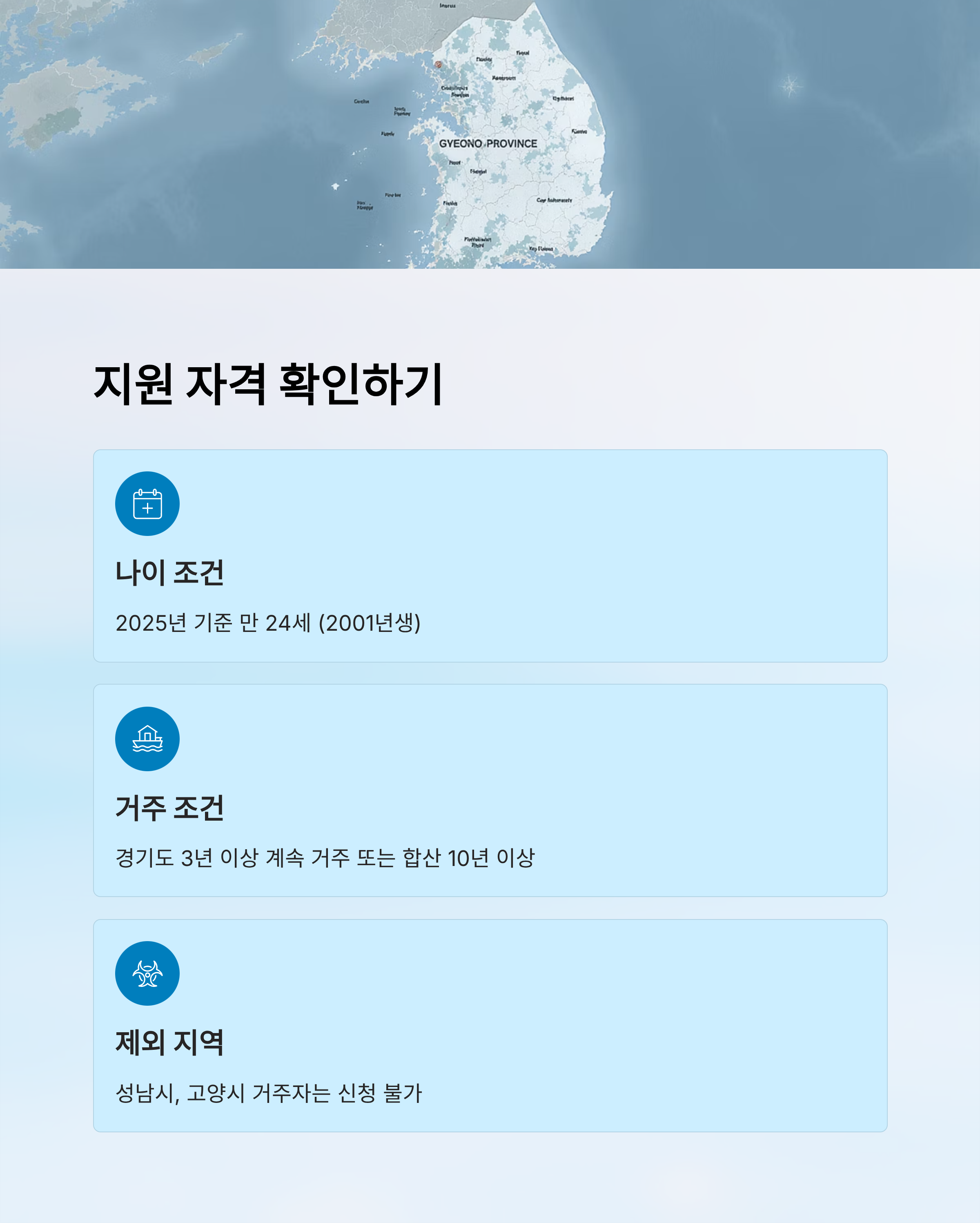 경기도 청년기본소득은 단순히 24세가 된다고 자동으로 지급되는 건 아니에요. 자격 요건을 만족해야 받을 수 있죠. 먼저 나이는 신청연도 기준 24세여야 하고, 경기도에 주민등록을 두고 3년 이상 계속 거주하거나 합산 10년 이상 거주한 청년이어야 해요.