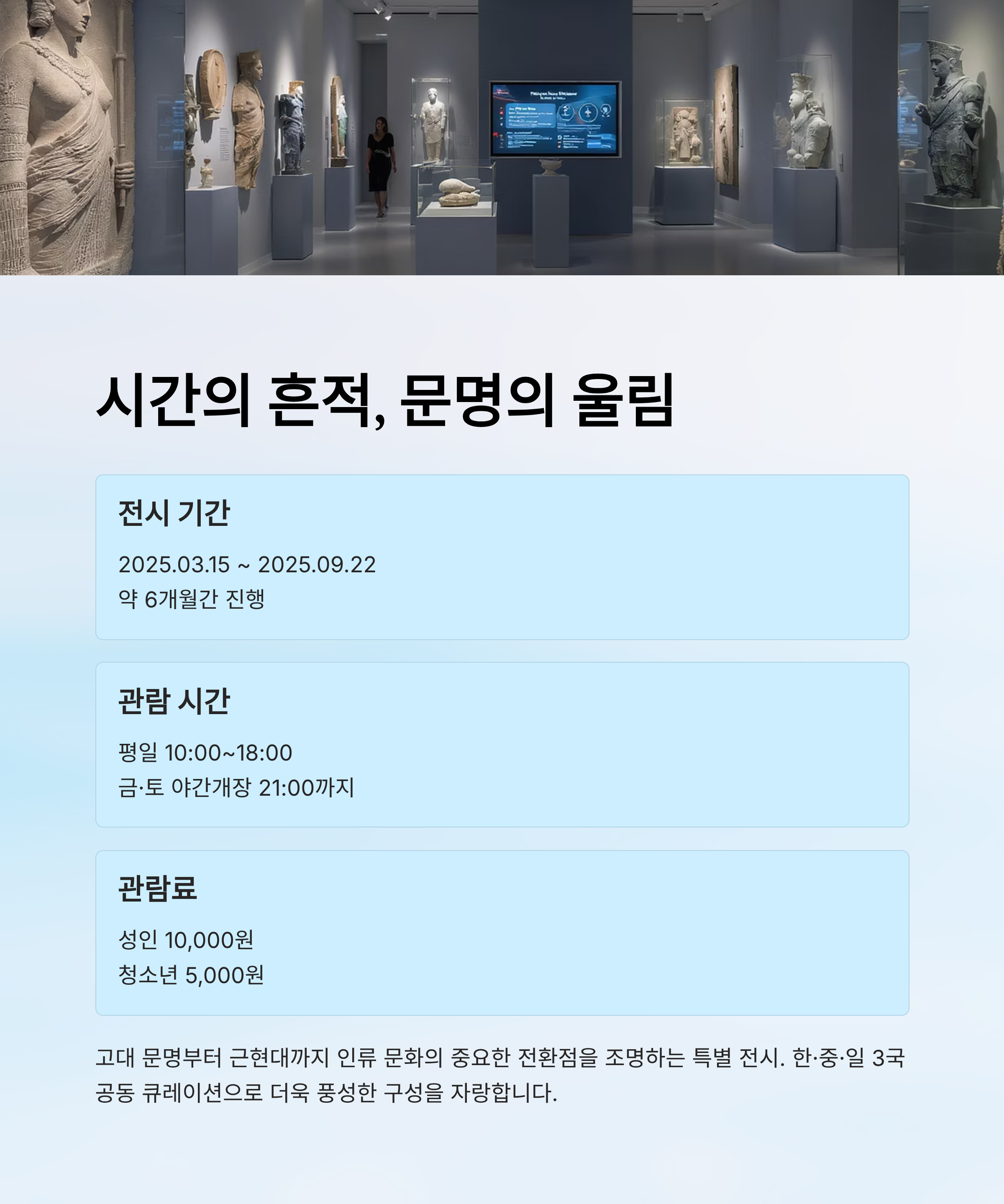| 전시명 | 시간의 흔적, 문명의 울림 |