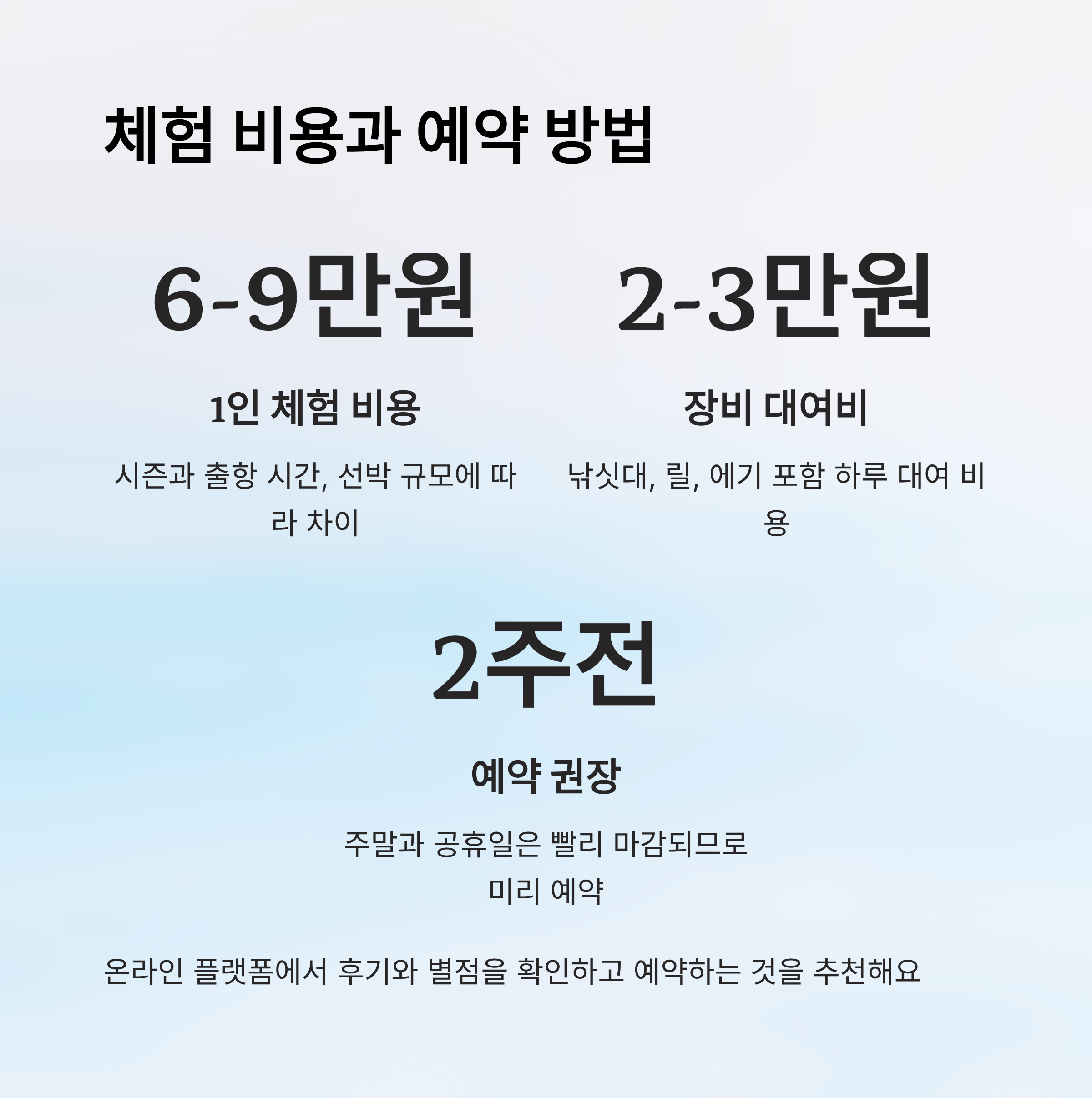 | 전화 예약 | 선장과 직접 소통 가능 | 시간 소요 | 자주 가는 단골 |