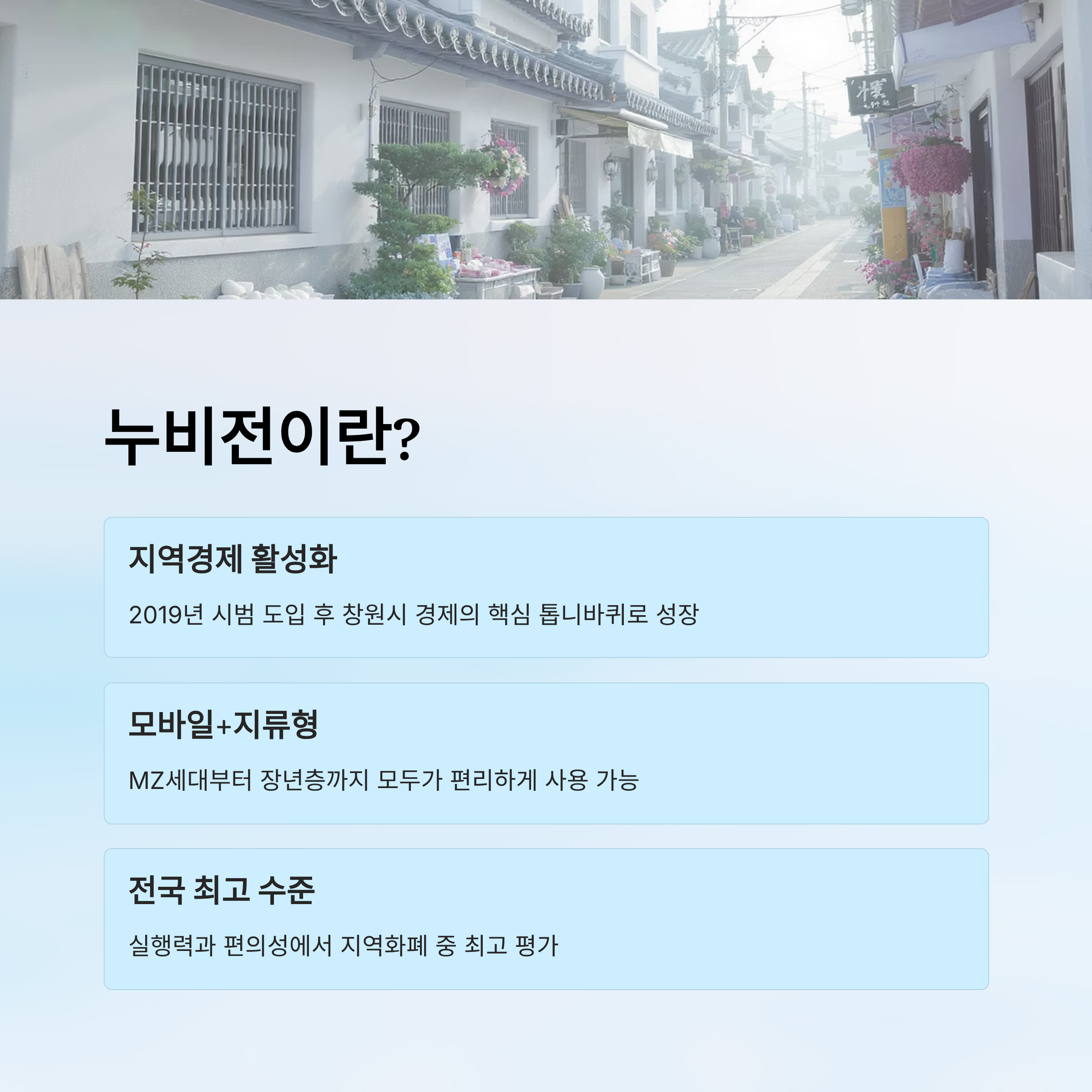 누비전은 창원시가 지역 경제를 살리기 위해 도입한 지역화폐예요. 처음 등장했을 때만 해도 단순한 '지역전용 상품권'이라고 생각하는 사람들이 많았지만, 실제로는 창원 시민의 지갑을 지켜주는 강력한 수단이 되었답니다.