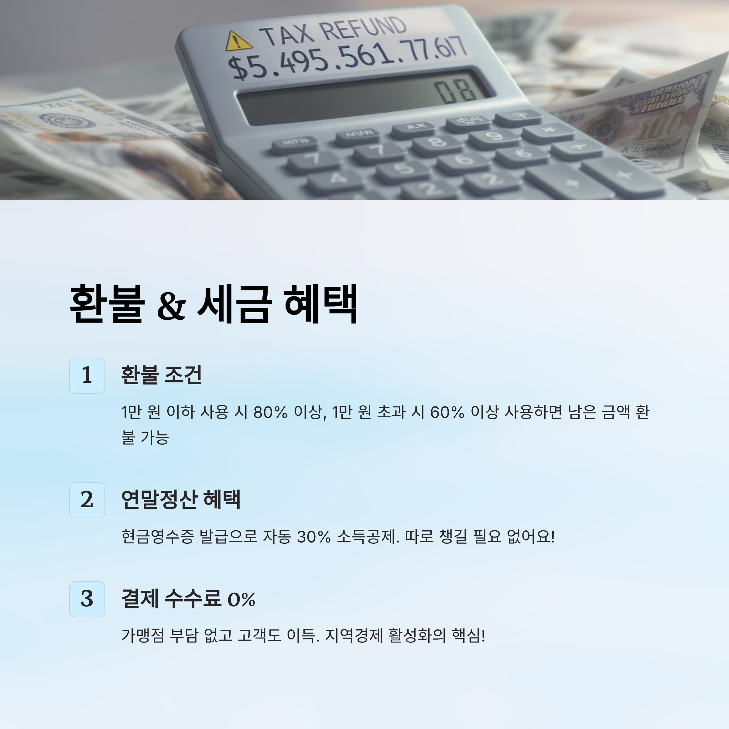 가맹점 사장님들도 결제 수수료 0%라 부담이 없고, 고객 입장에서도 쓸수록 이득이 되니 지역경제 활성화와 시민 만족 모두 잡은 구조예요. 🧾