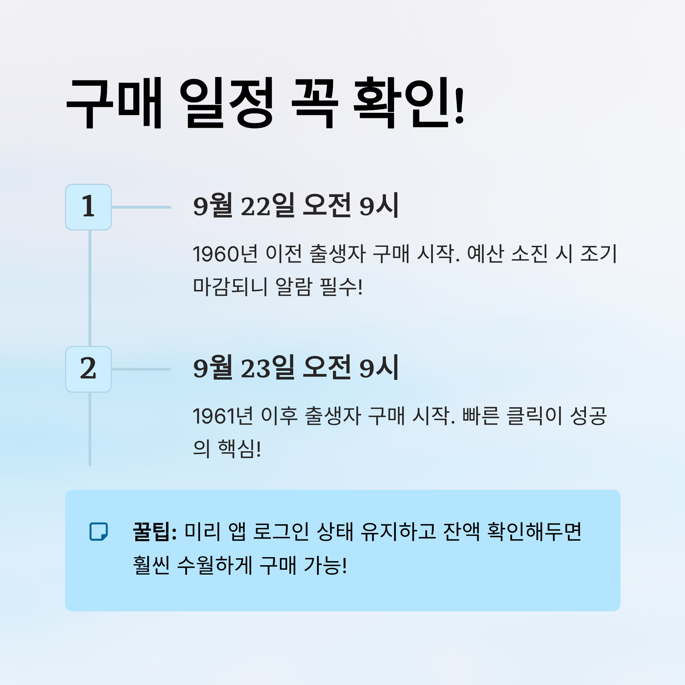 하지만 중요한 건 '예산 소진 시 조기 마감'된다는 점! 구매 날짜는 물론, 아침 일찍 준비해두는 게 성공의 핵심이에요. 🙌