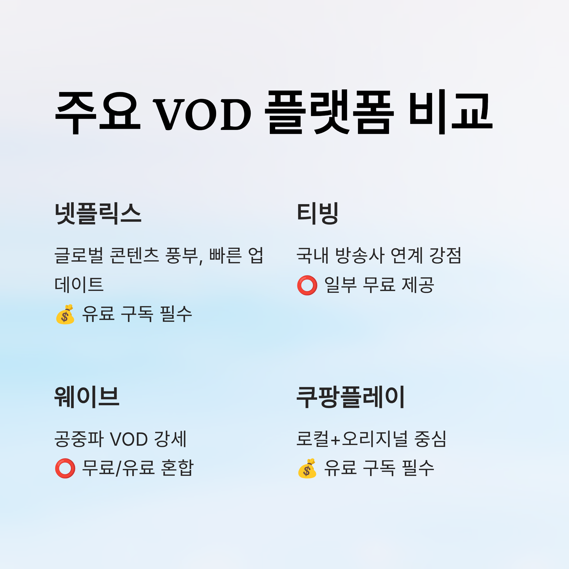 🆓/💰 무료 & 유료 VOD 플랫폼 비교