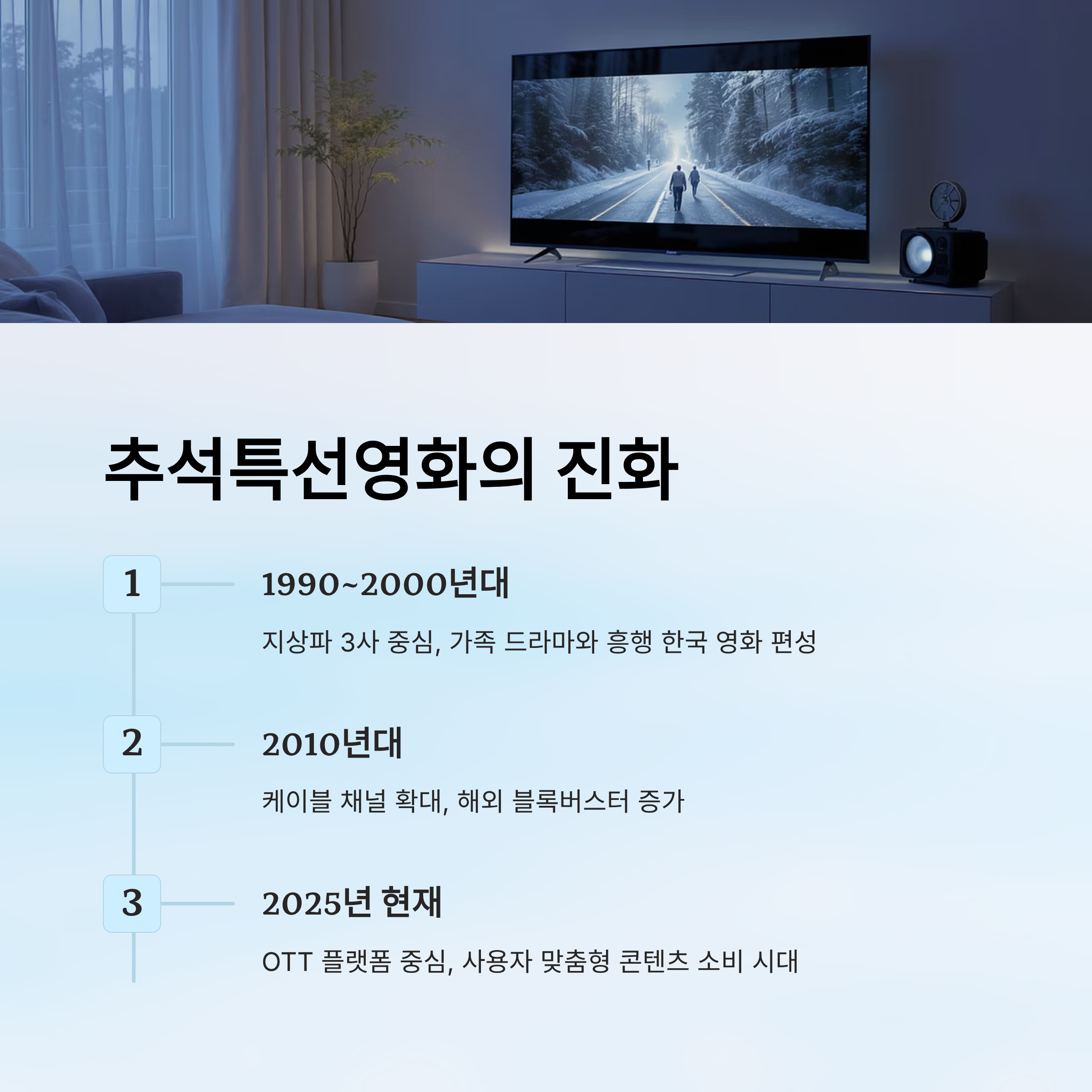 하지만 요즘은 OTT 플랫폼의 등장과 확산으로 인해, 추석특선영화의 패러다임도 크게 바뀌었어요. TV 편성표에 얽매이지 않고, 넷플릭스, 티빙, 쿠팡플레이 등을 통해 자유롭게 시청하는 사용자가 많아졌죠.